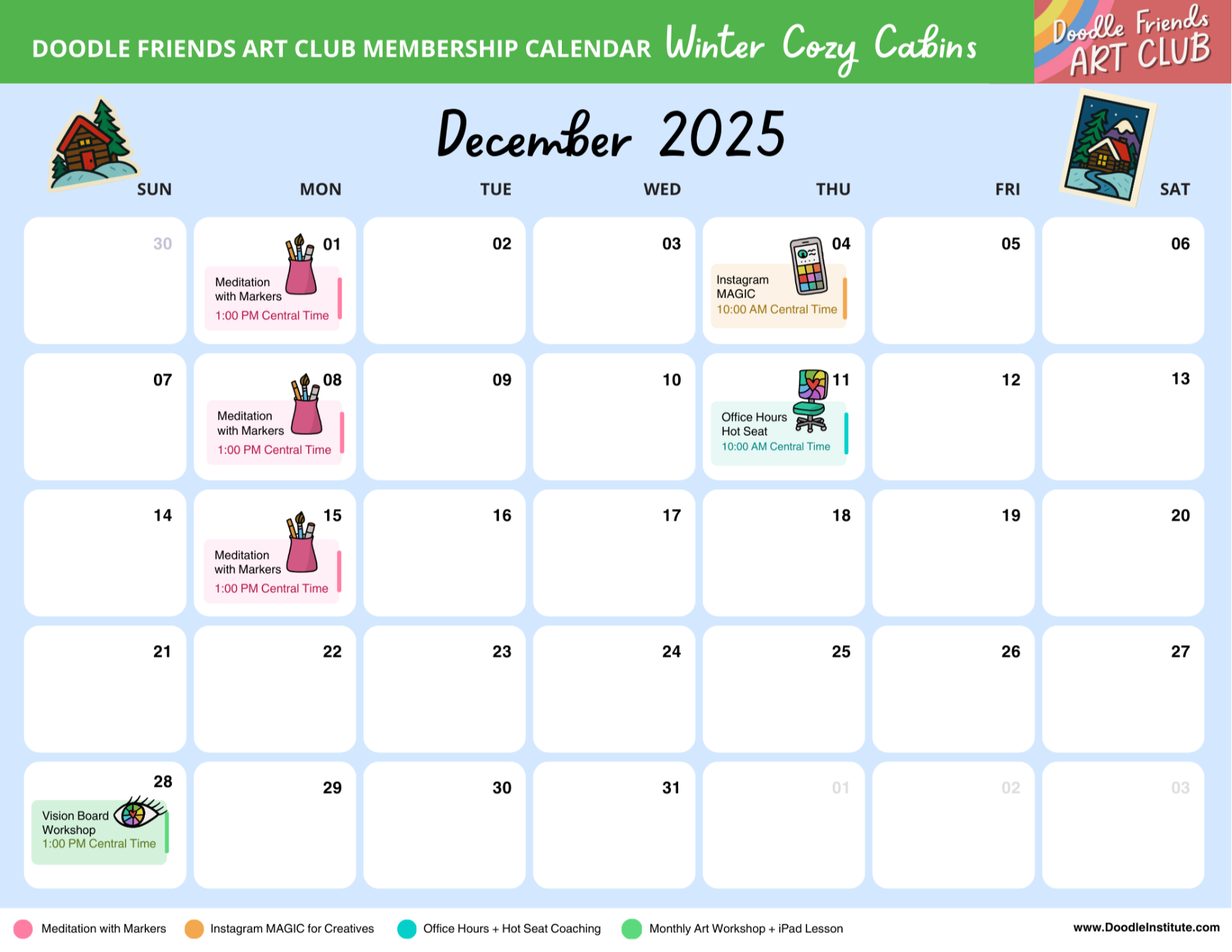 Each month in the Doodle Friends Art Club feels like a fresh wave of creativity, connection, and inspiration. Here’s what you can look forward to this month: