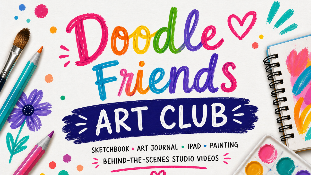 The Doodle Friends Art Club is your creative home base. A place to practice, explore, and grow — one beautiful project at a time.