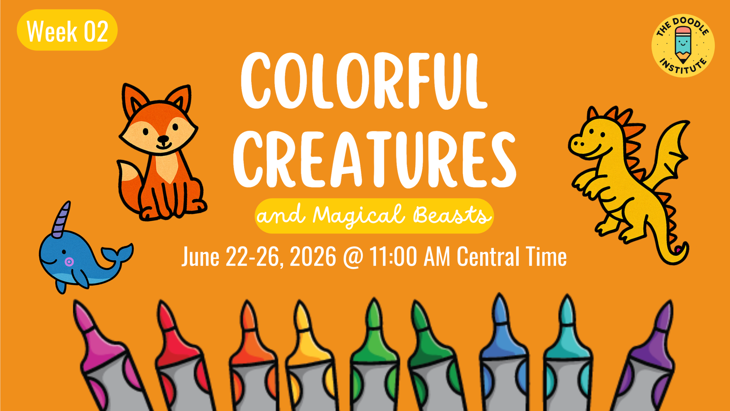 If your family loves magical creatures, silly animals, and imaginative worlds, you are going to LOVE Week 2 of Doodle Camp with Diane Bleck! This week is all about creature design, creative expression, and building confidence through fun, step-by-step doodle lessons. Together, you’ll invent characters, mix colors, explore emotions, and bring your wildest ideas to life in a joyful creative experience the whole family can enjoy.